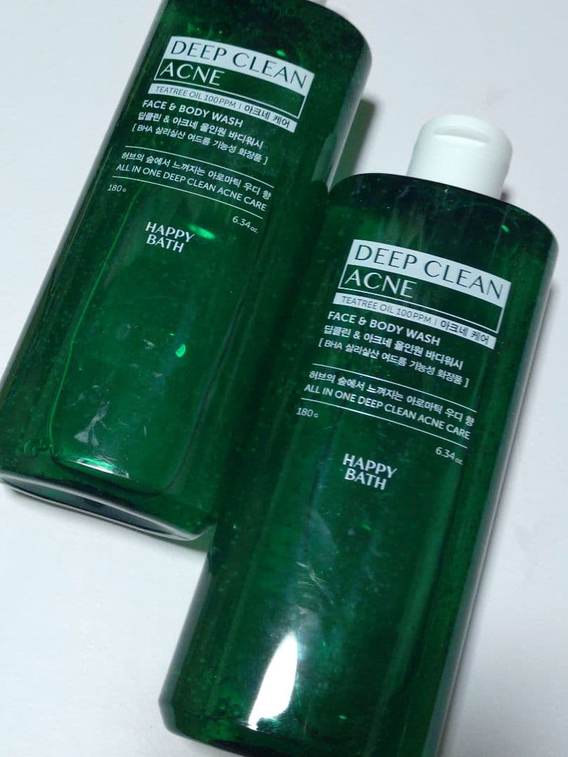 ژل شستوشوی صورت و بدن ضد آکنه Happy Bath Deep Clean، با فرمولاسیونی الهامگرفته از طبیعت و علم مراقبت پوستی کرهای، پاسخی هوشمندانه برای افرادی است که به دنبال پاکسازی عمیق منافذ و کنترل آکنه در تمام نواحی پوست بدن هستند.